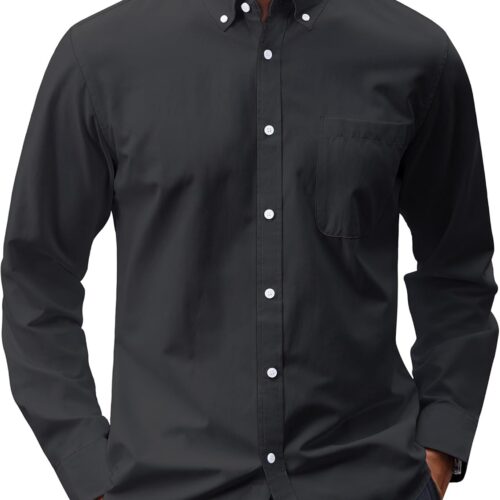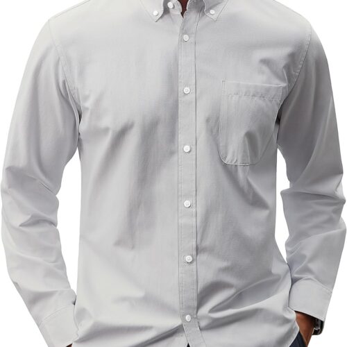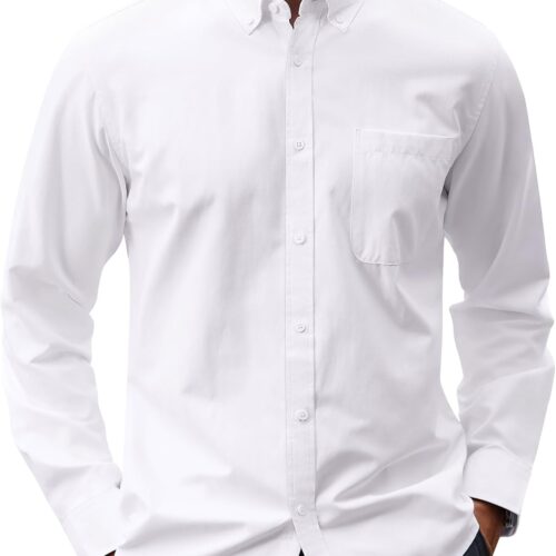 Men’s Oxford Shirt Solid Casual Button Down Collar Shirts Long Sleeve Dress Shirts with Pocket