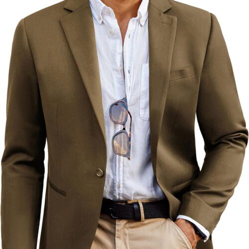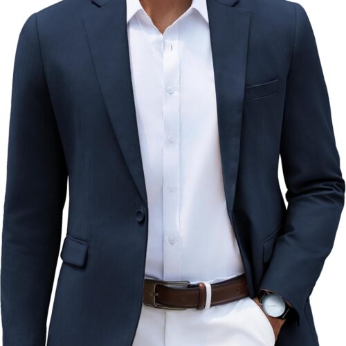 Mens Casual Blazer Slim Fit Sport Coats One Button Stylish Business Suit Jacket