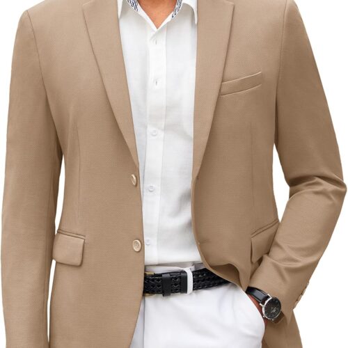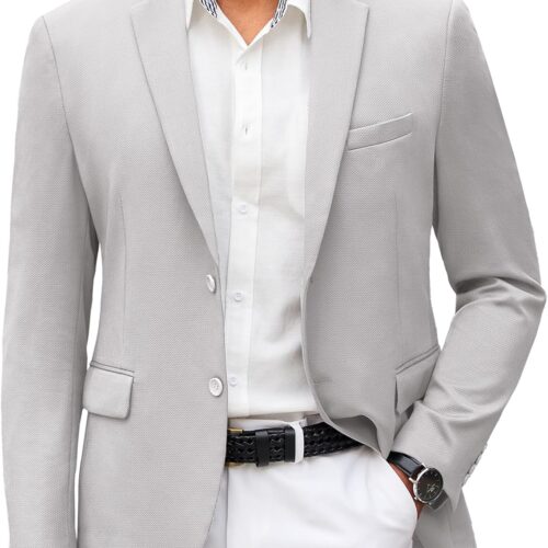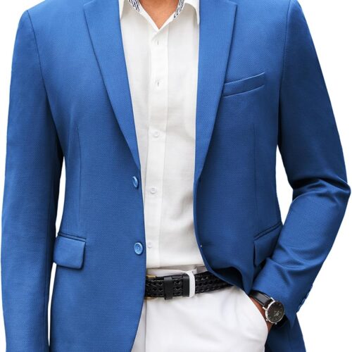 Mens Casual Blazer Slim Fit Suit Jacket Lightweight Knit Sport Coat Two Button Stretch Blazer Jacket