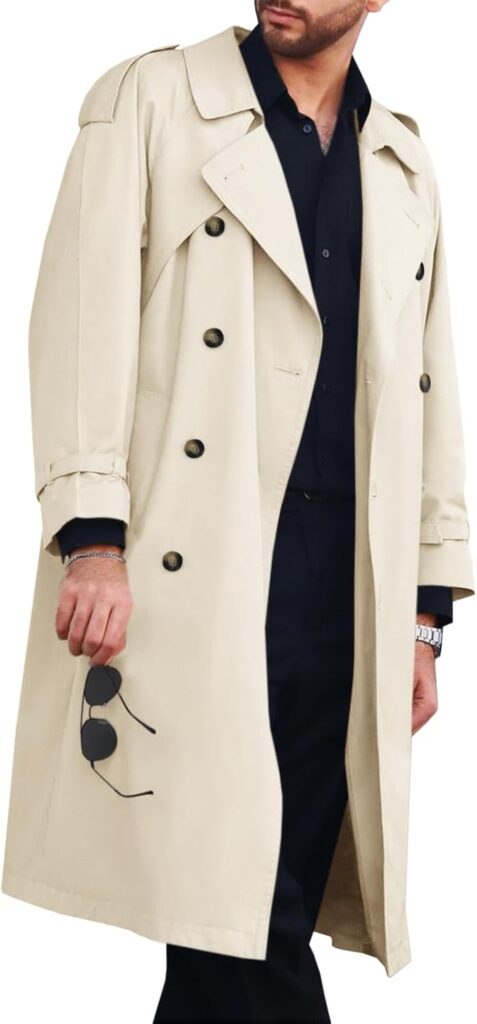Men’s Trench Coat – Long Jacket Overcoat-Oversized Casual Windbreaker