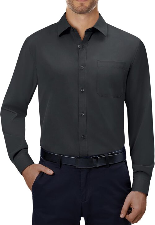 Men’s Dress Shirts Stretch Stain Shield Long Sleeve Solid Formal Shirt Business Casual Button Down Shirts