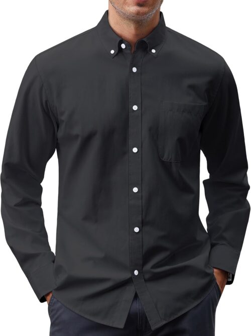 Men’s Oxford Shirt Solid Casual Button Down Collar Shirts Long Sleeve Dress Shirts with Pocket