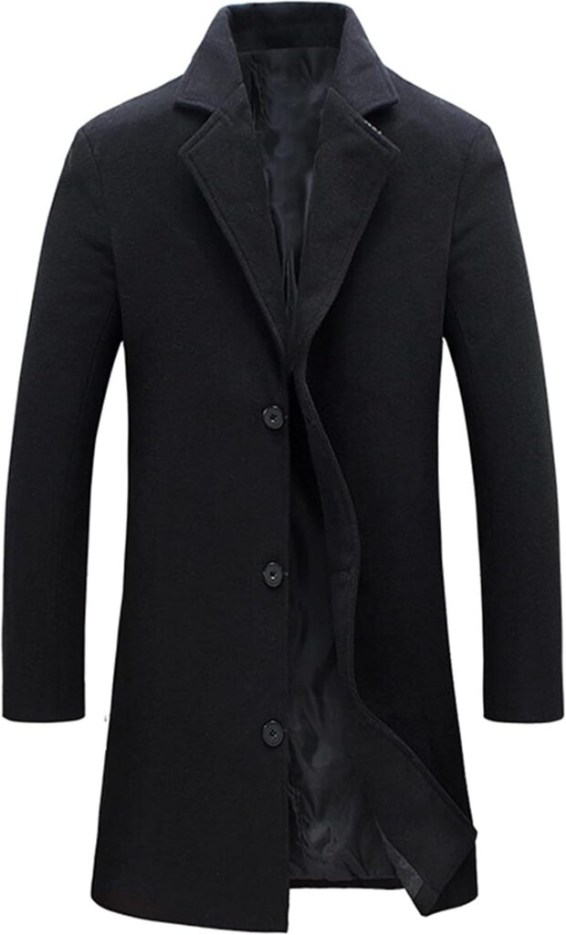 Men’s Notch Lapel Double Breasted Long Trench Coat Casual Cotton Blend Peacoat