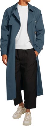- Features:This Men’s trench coat features double breasted, slim fit, over knee length,classic design, 2 side pockets, solid color, lapel collar, long and belted in waist, providing for versatile styling options to show your stylish.