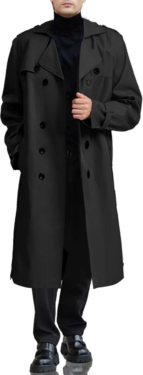 Men’s Trench Coat – Long Jacket Overcoat-Oversized Casual Windbreaker