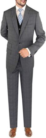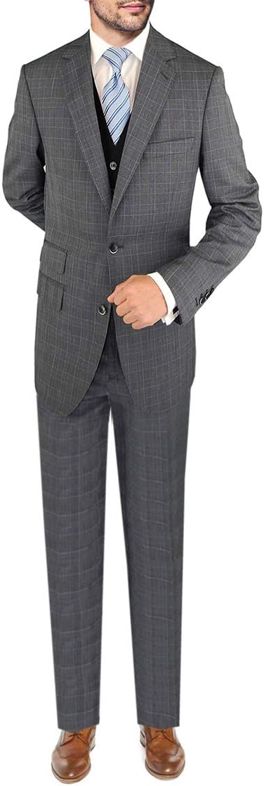 Men’s Stretch Performance Two Button Suit – Two Piece Business Suit Jacket And Pants