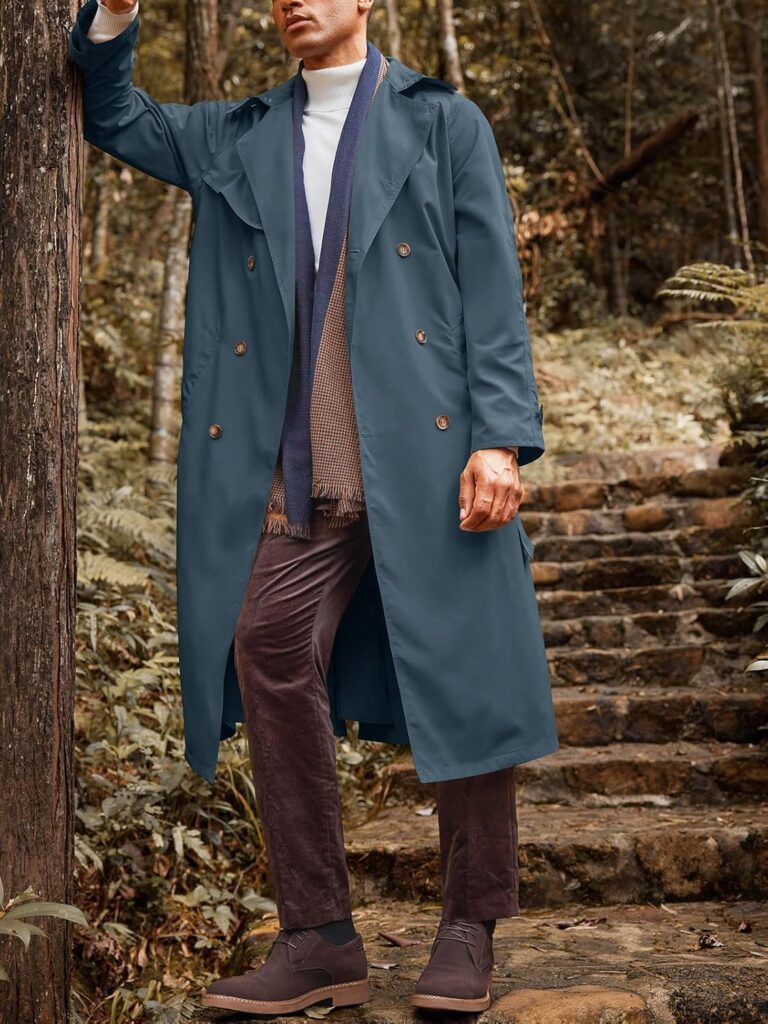 Men’s Trench Coat Double Breasted Belted Windbreaker Jackets Lapel Lightweight Long Jacket Casual Overcoat