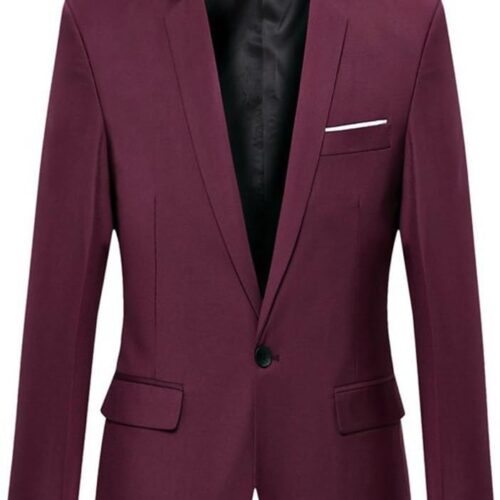 Mens Blazer Jacket Slim Fit Casual One Button Sport Coats