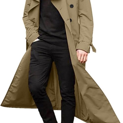 Trench Coat for Men Double Breasted Notched Lapel Casual Slim Fit Long Jacket Windbreaker Overcoats